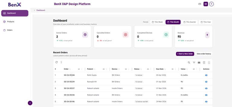 Unified digital hub that transforms the fragmented Orthotics and Prosthetics (O&P) workflow into a single, secure, and seamless platform encompassing 3D scanning, precision digital design and integrated order management